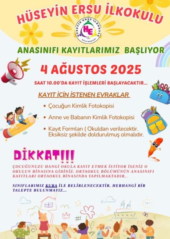 2020 Ekim - 2021 Eylül arası doğan çocuklar (yer varsa) 4 yaş sınıfına kaydedilir.